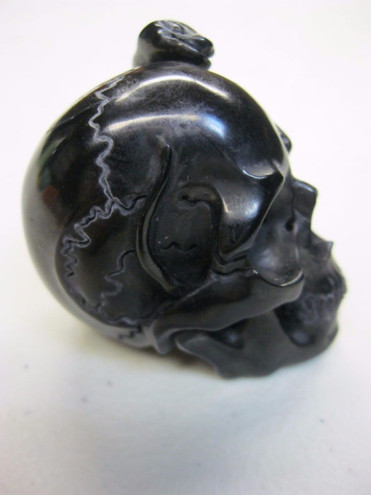 NATURAL WATER BUFFALO HORN HAND CARVED HUMAN SKULL AND SNAKE APPROX 1-1/2"