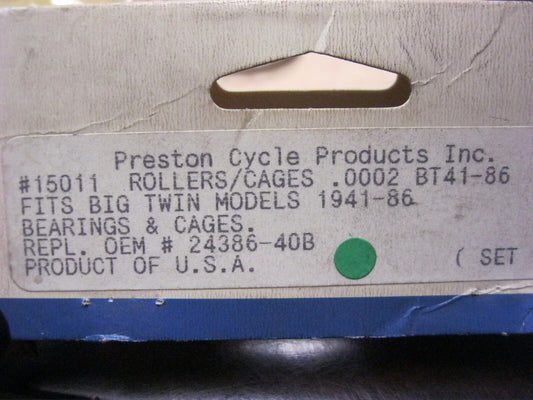 PRESTON CYCLE BEARINGS AND CAGES .0002 FITS BIG TWIN 41-86 (OEM 24386-40B) 15011