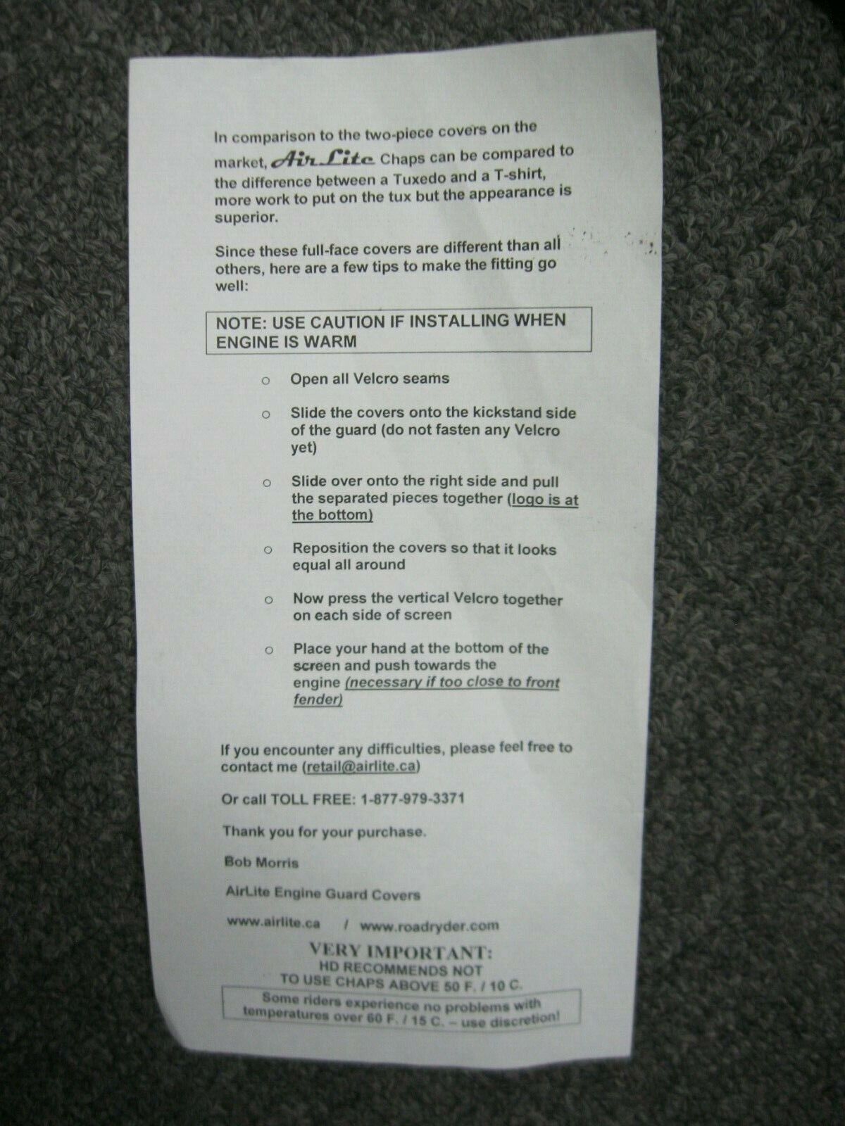 Airlite Motorcycle Engine Guard Chaps with cutouts for 2009 & Later FLH Models