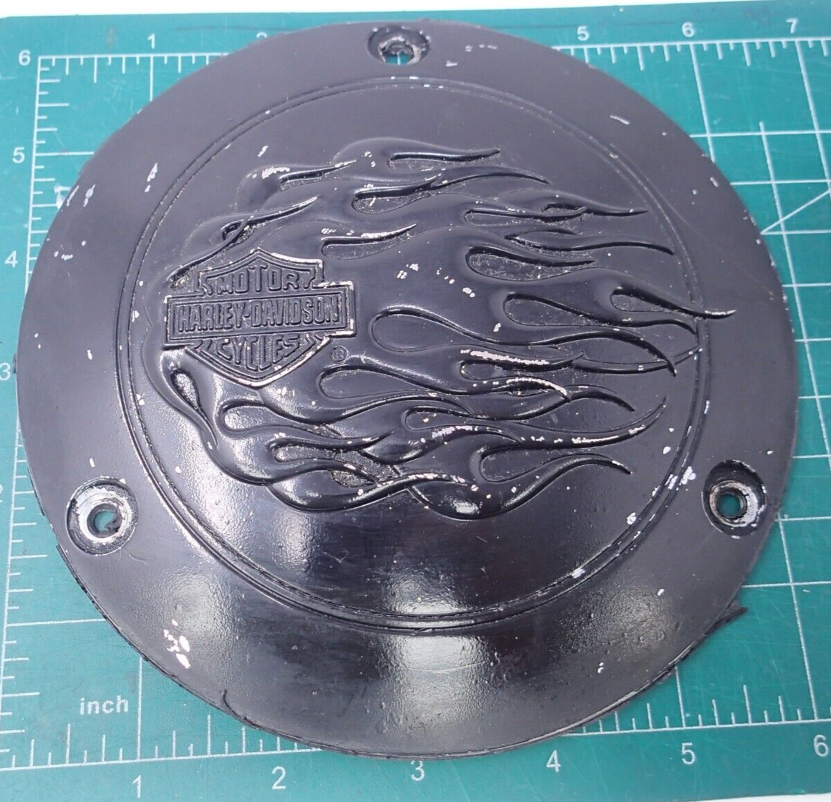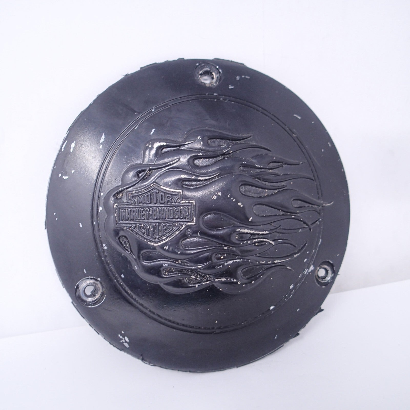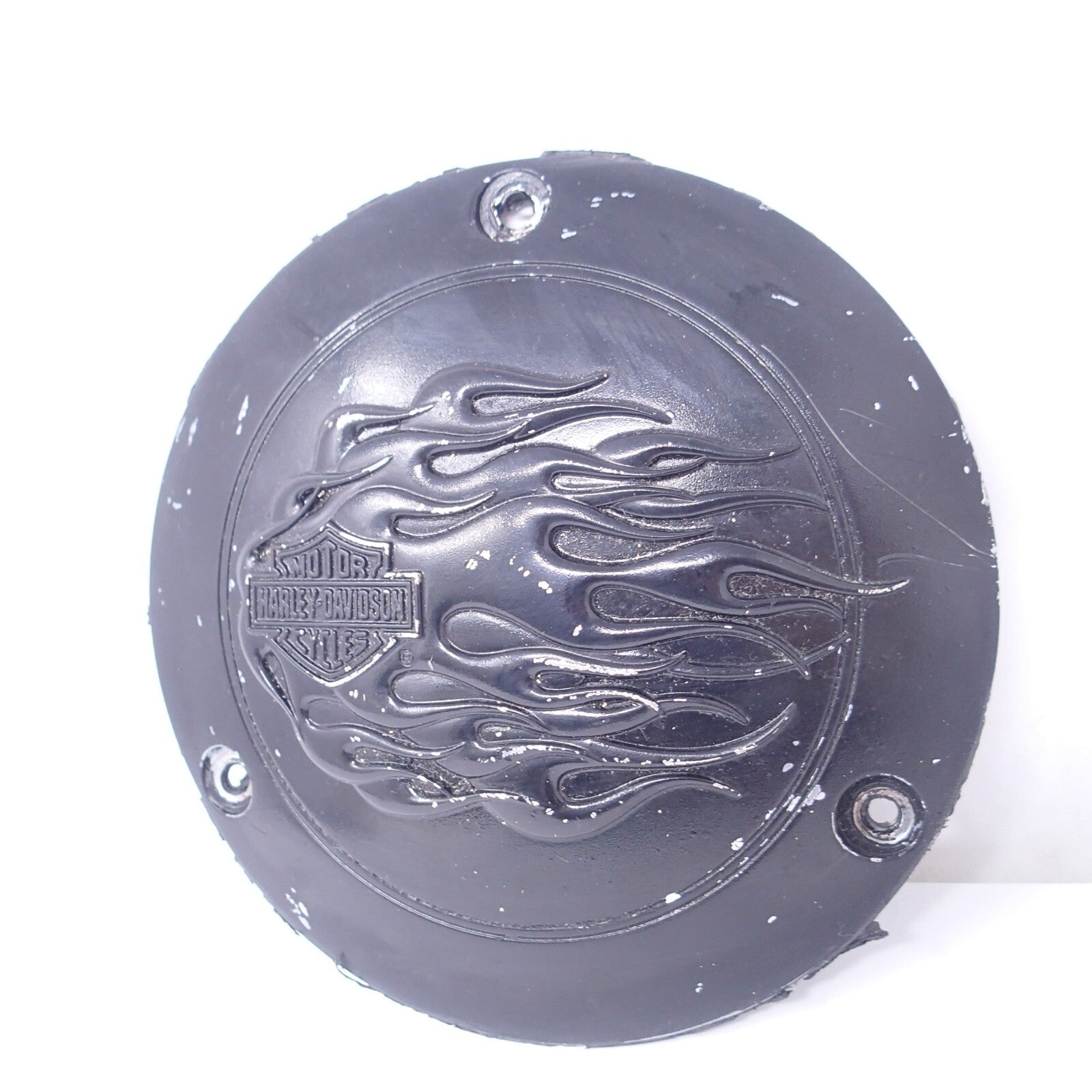 Black matte Timer Cover Flames Harley Davidson Twin Cam Derby Scratches