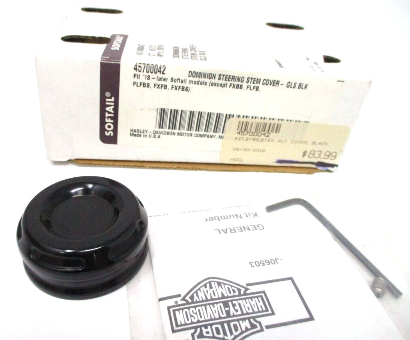 GENUINE HARLEY DAVIDSON DOMINION STEERING STEM COVER - GLOSS BLK 45700042