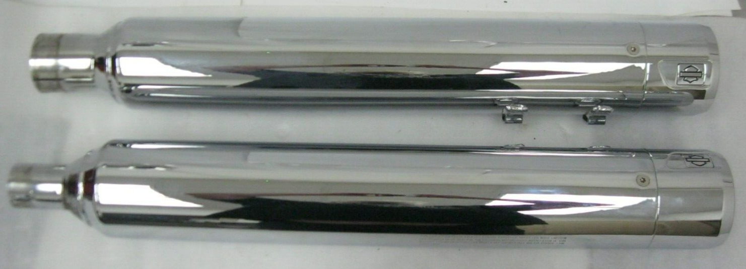 Harley-Davidson 21 & Later M8 CVO Chrome Mufflers 64900731A/32 & Caps 65100170